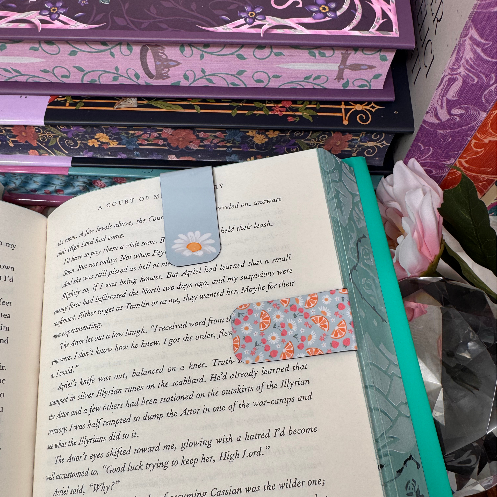 Celebrate the arrival of spring with a pair of magnetic bookmarks, perfect for using together to remind yourself exactly where you left off on the page and line of your story.