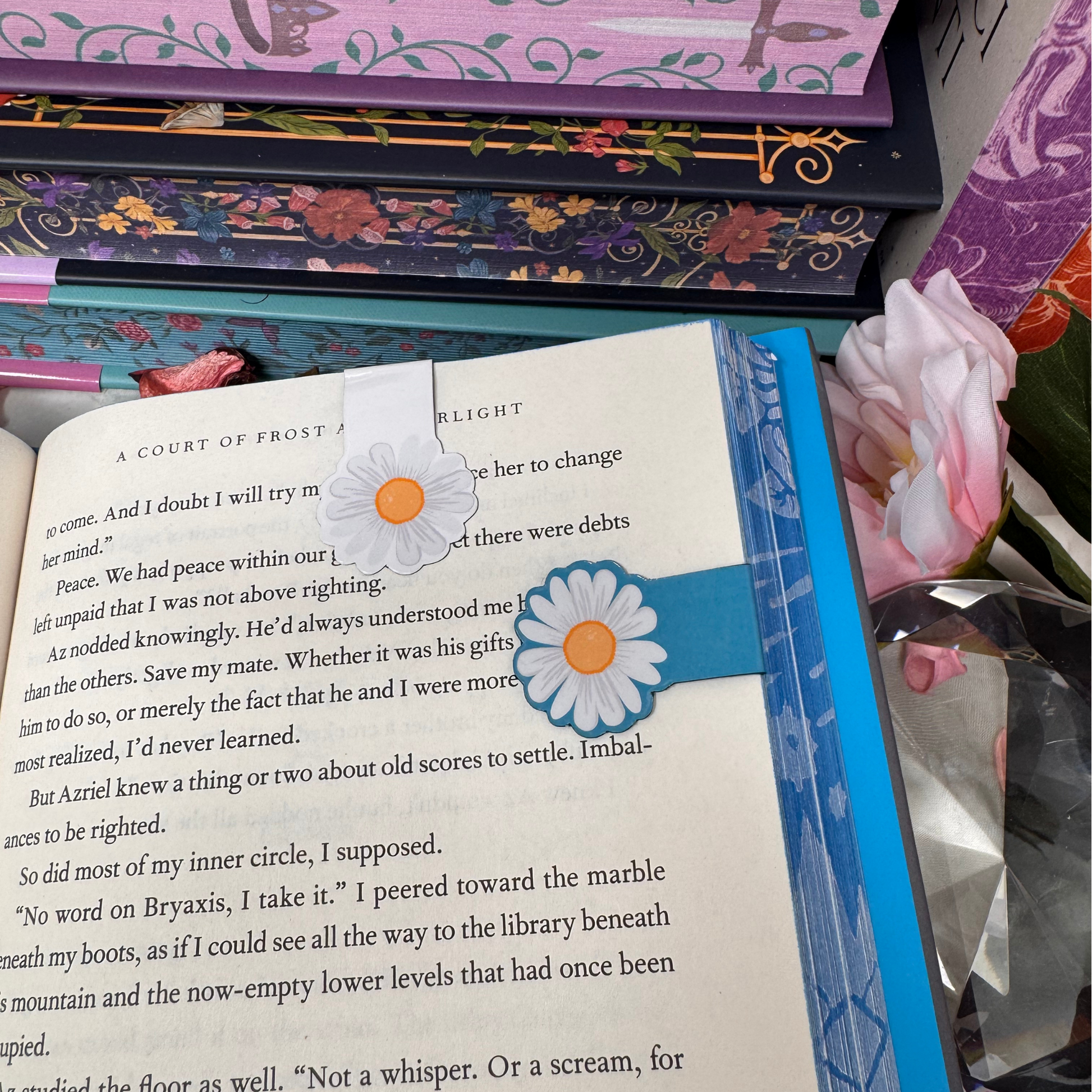 Celebrate the arrival of spring with a pair of magnetic daisy bookmarks, perfect for using together to remind yourself exactly where you left off on the page and line of your story.